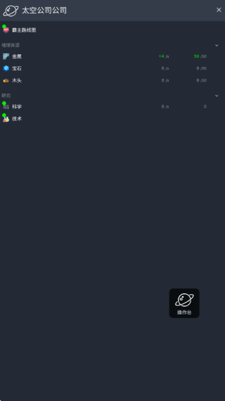 3. 点击画面左上角的太空公司图标,能查看公司可发展的路径,玩家需不断拓展公司业务。