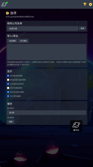 4. 此外,在设置面板中玩家可修改公司名字并进行存档。务必记住存档,否则游戏进度将会丢失!