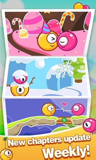 2、玩家需探索多种角色相遇方案,在充满小清新风格的场景中挑战海量特色关卡,充分发挥空间想象力与物理规律运用能力。