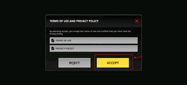 1、加载完毕进入游戏后,会弹出一个窗口,其中是一些“游戏协议”,直接点击【accept】即可。