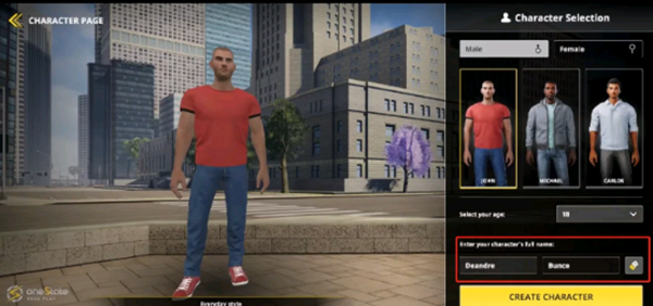 7、进入游戏后会有一个角色选择界面,可选择男性/女性,在这里修改名字将决定你在游戏中的称呼。