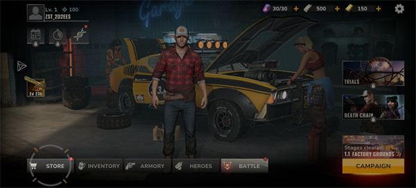 打开《僵尸国度》手游进入车库后,先检查弹药、金币和钻石储备情况,优先利用初始资源升级手枪,提升基础伤害。
