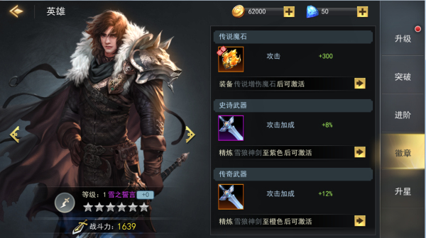 以雪之誓言为例,其第一枚徽章激活条件是:佩戴一颗传说增伤魔石,玩家达到14级即可装备魔石,佩戴指定魔石后,雪之誓言除获得魔石本身属性加成外,还将获得徽章带来的300攻击力加成。