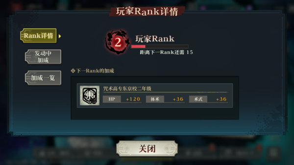 ps:体术或术式属性值为0的角色,即使强化也无法提升该属性值,同时无法享受玩家rank的对应属性值加成。