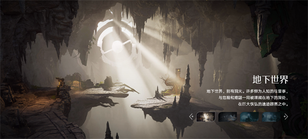 钟乳石洞穴中的悬浮石台与机关天窗构成奇幻景观,光影交错间隐藏着高难度谜题与往昔秘辛
