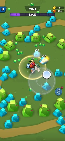 怪物幸存者io游戏是一款主打割草玩法的冒险类游戏。玩家只需在关卡中拖动角色持续移动,借助自动攻击来击杀周边的怪物,待角色升级后,便可选择提升各类战斗属性,诸如挑选技能或者增强防御等。唯有角色等级不断攀升,才能够肃清地图里的所有怪物。