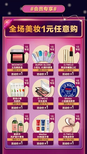 会员独享1元购,成本价购物,更有专属身份特征;