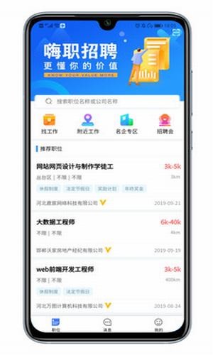 嗨职app是邯郸地区的专业的人才招聘网站。服务范围包括:网络招聘、现场招聘、企业专场招聘、招聘流程外包、职业培训、企业培训、人才测评、法务外包、薪税服务等专业的人力资源服务。