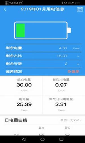 清晰查看各种成交电量、日均用电量、用电量、剩余日均用电量的用电信息;