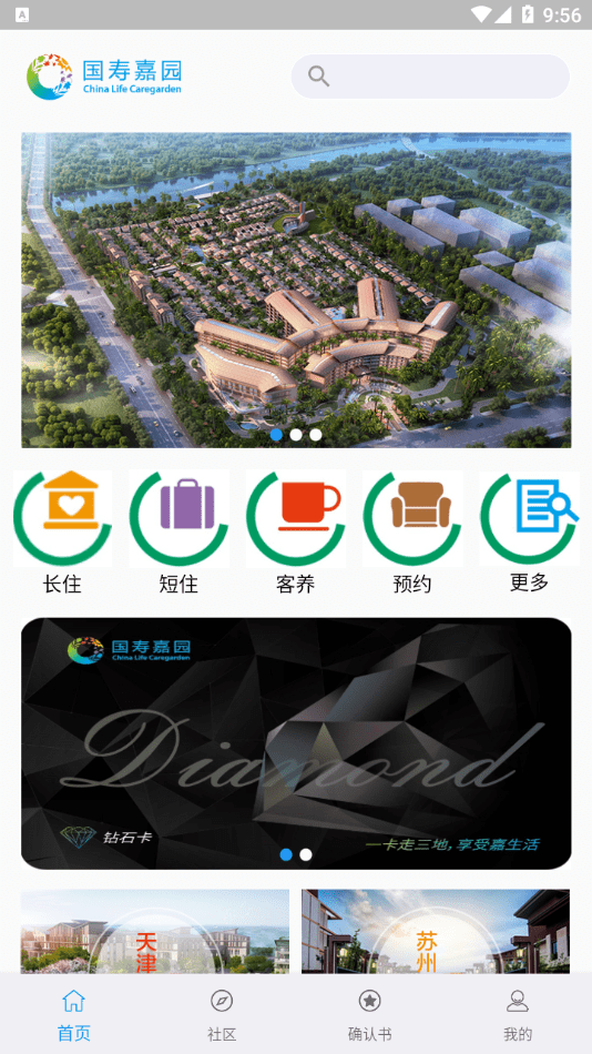 国寿嘉园APP是一款专业的智能养老服务软件,具有社区沟通、确认权、居住权、在线预订、宾客支持、短住、长住、订单管理等功能模块。