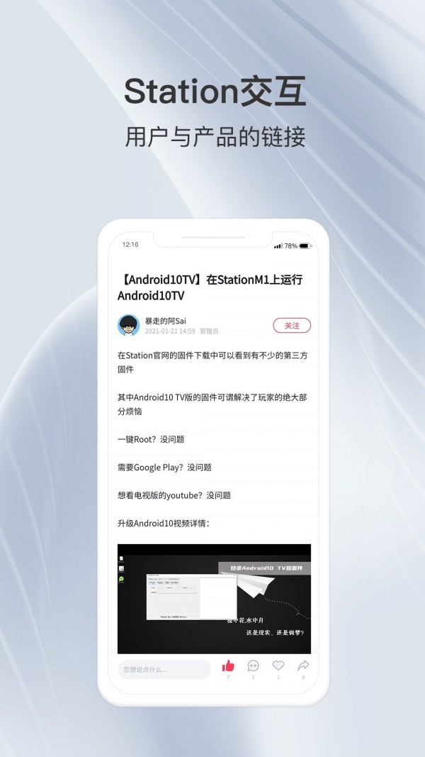 Station Linking App是一个基于Station开放产品而打造,具有Station交互、创作分享和社交属性的生态平台,通过融合的Station开放产品和生态平台,给予用户更美好的智能生活。