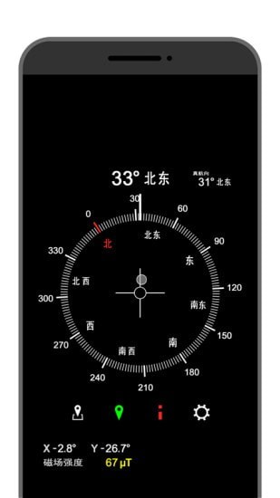 3D指南针立体罗盘加实境显示;显示所在地图,并以图随人转显示;大字体显示方位与角度同时显示3D立体罗盘、实境及地图。一边走路一边看着手上的罗盘,会不会撞到别人,或一头撞向电线杆?当你找门牌时,你知道你现在所处的地址吗?3D指南针帮你清晰的指明道路。