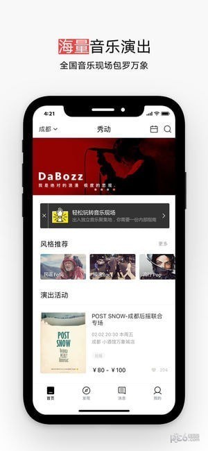 秀动showstart - 由太合娱乐集团旗下太合乐动公司推出的一款集合音乐品味人群的现场演出社交应用,喜欢独立音乐的乐迷必备!