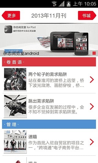 销售与市场管理版APP是销售与市场杂志系列的旗舰媒体软件。销售与市场管理版APP以战略营销管理为内容导向,以传播创业前智慧、引领中国营销为宗旨,以洞察市场趋势、引领营销方向为理念,成为权威、前瞻、理性、专业的大型营销管理期刊。