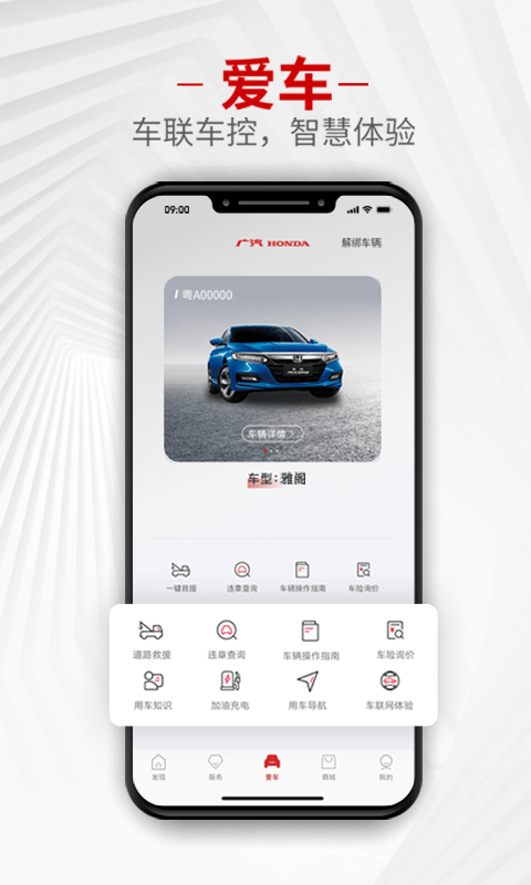 爱车:爱车车况全掌控!绑定爱车,体验互联服务或智能控车功能
