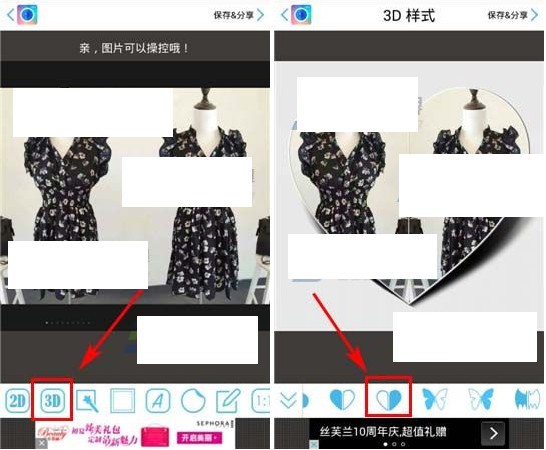 2)下面选项中有各种效果例如:3D效果心型效果,选择你想要的效果。(如下图)
