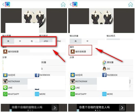 3)点击【保存&分享】,点击你想要的质量等,点击【储存到相册】。(如下图)