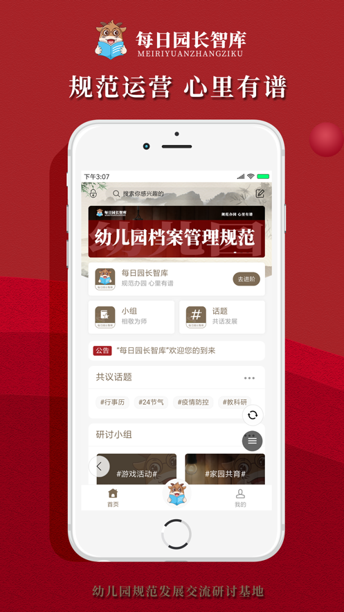 每日园长智库APP是一个幼儿园规范发展深度交流研讨社区,旨在让每一个幼儿园园长(经营者、创办者)在幼儿园的运营上都可以做到规范管理、规范运营、规范教学,从而让幼儿园规范发展,让办园质量层层递进、螺旋上升。每日园长智库,规范办园,心里有谱。