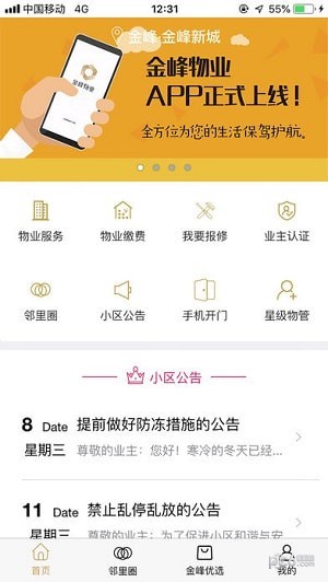 金峰物业app是提供小区物业服务的应用软件,而金峰物业app则为小区业主提供专业的物业服务,支持物业保修、家政、手机开通、社区服务、家教聘请等服务。这样就可以体验到便捷的生活。