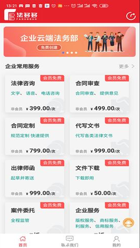 3、有很多的企业常用服务可以让用户进行选择使用,包括但不限于法律资讯、合同审查、合同制定、代写文书、出律师函、以及案件委托等等。