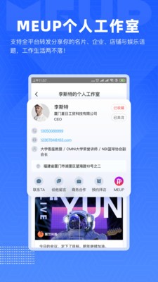 MEUP是厦门互啪智能科技有限公司开发的效率工作台,功能丰富全面,包括商城、工作室、知识库、悬赏广场、泛社交等。