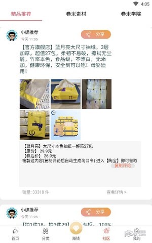 1.通过社区可以找到更多的卷米素材,只需一键即可分享。
