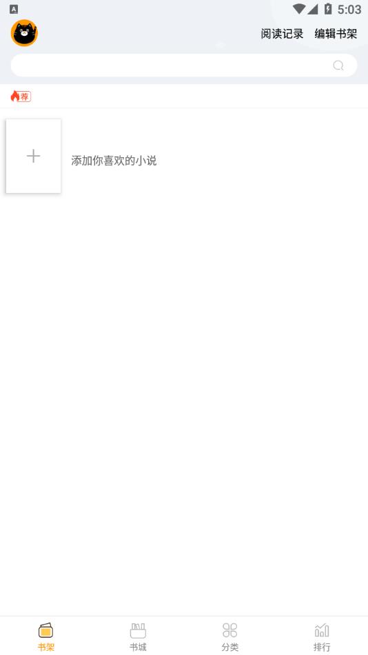 2、进入到书架,将自己喜欢的小说添加到书架。