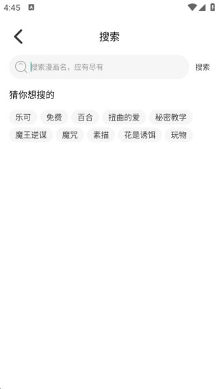 4、点击搜索,输入漫画名称,漫画作者去搜索查看,任意漫画都可以搜索到。