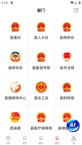 4、部门板块,县委办,县人大办,县政府办等都可以直接点击去了解,办事更轻松。