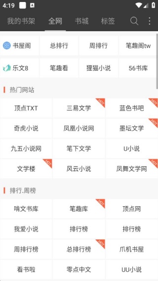 2、点击全网,有各种看书站点去选择,让每个人看书直接就可以进行。