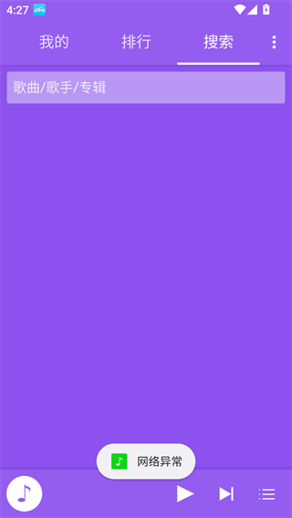 4、点击搜索按钮进入搜索板块,输入关键字可以搜索查询到歌手、歌曲以及专辑。