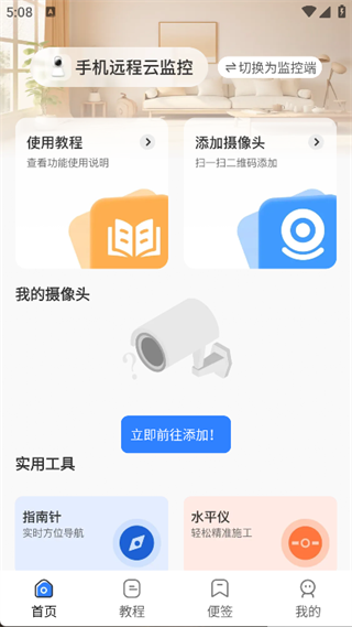2. 在首页即可看到手机远程监控功能,可以添加摄像头,开始使用;