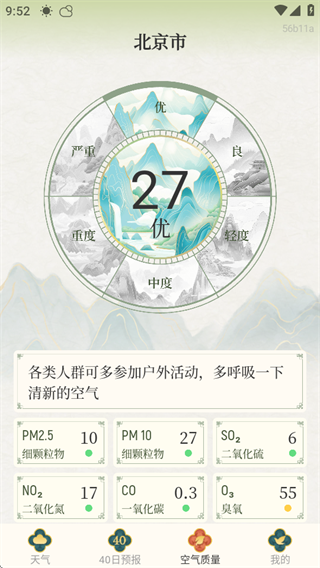 4、包含了详细的空气质量情况,还有贴心的生活指导;
