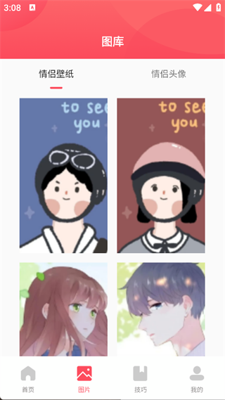 3. 点击页面下方的‘图片’,即可看到各种风格类型的情侣壁纸和情侣头像;