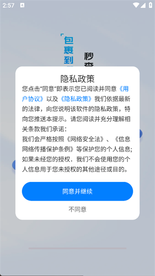 1. 下载并安装APP,点击同意并继续,即可进入主页面;