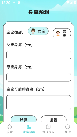 3、不仅仅只有流量统计的功能,还可以给孩子来进行一个身高的预测;