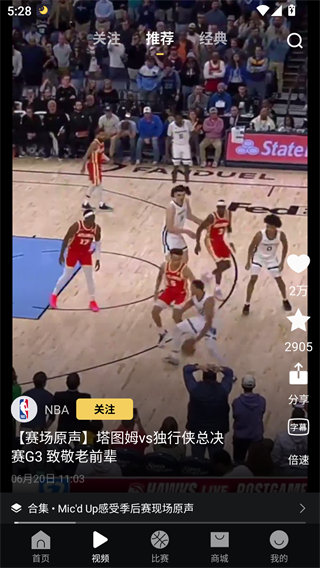 4、视频板块中可以看到一些关于NBA球星的视频内容,往下下滑动可以切换视频。