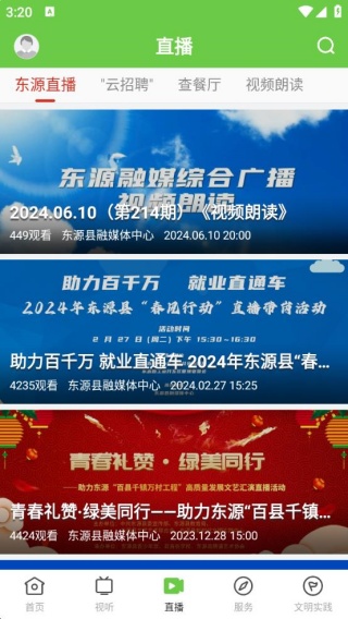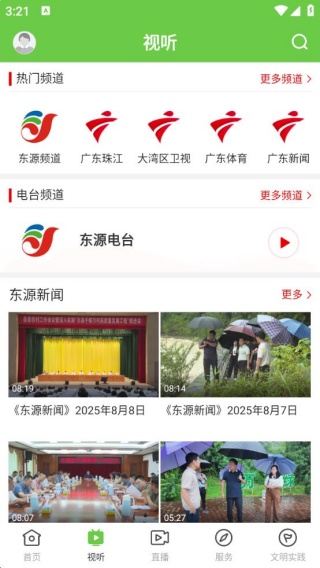 3、可以看视频、看直播、听广播、看电视、看图文新闻,从多个方面掌握东源最新信息;