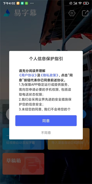 1、下载安装软件并打开,点击同意,进入软件主界面;