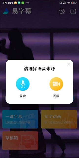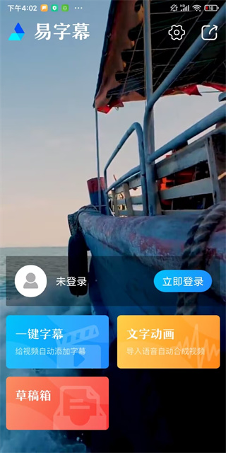 2、在主页可以看到一键字幕、文字动画以及草稿箱等功能;