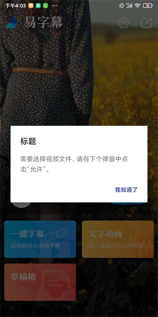 3、点击一键字幕,提示需要获取权限,授权后添加视频即可完成字幕效果;