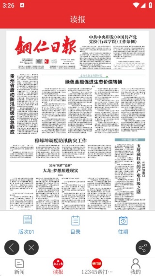 2、点击读报,可以去阅读铜仁日报电子版,阅读报纸的操作更简单。