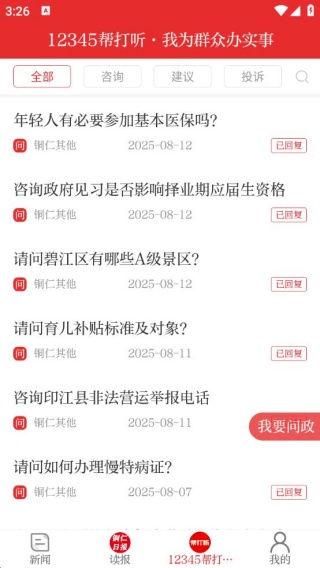 3、进入12345帮打听,为群众办实事,提问都有详细的回答。