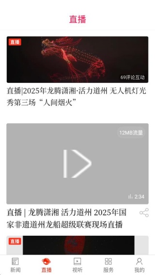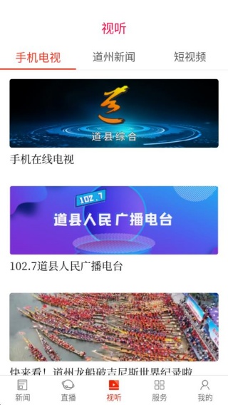 4、视听界面,有手机电视,道州新闻,短视频选择播放,观看随时进行。