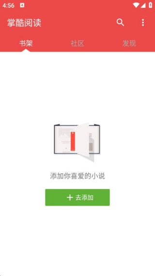 1、进入到书架界面,可以将自己喜欢的小说进行添加;
