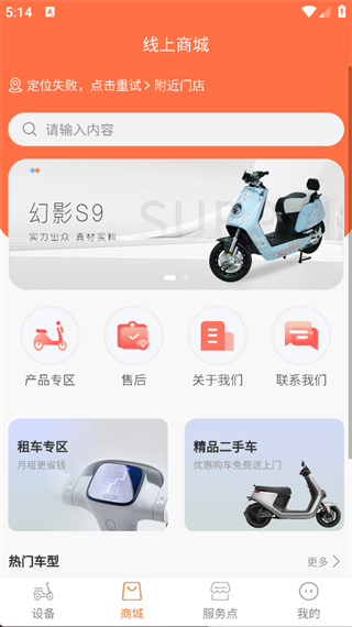 2.内置商城服务,用户可以在线查找各种型号的电动车,并自由选择购买或租赁车辆;