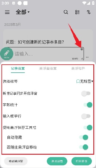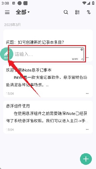 5. 双击界面左侧的绿色悬浮窗按钮,便能够随时唤起笔记功能。