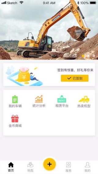 1、下载安装app之后,进入首页,可以看到我的车辆、统计分析、租赁平台服务;