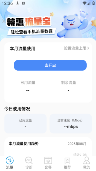 2、每个人的手机流量使用详情可以在首页之中来查看到;