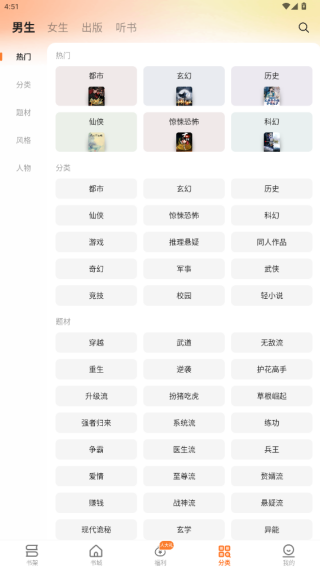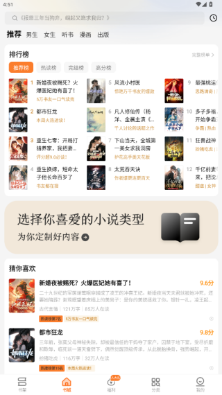 3、包含男生、女生、出版等专属频道及热读榜、完结榜等榜单,快速定位优质内容。